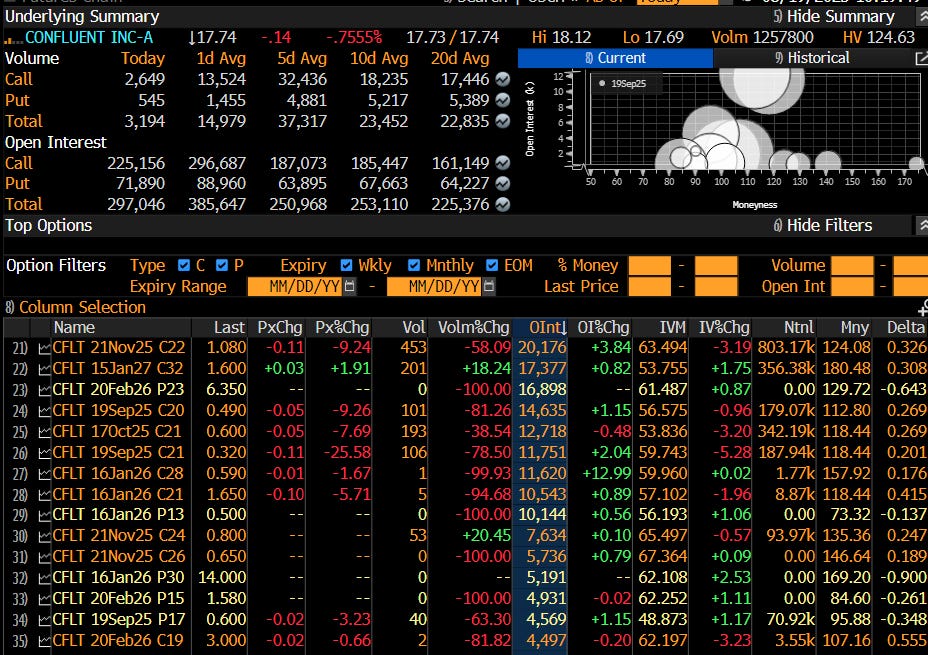 This isn't some retail trader getting cute with calendar spreads. This is probably a fund with real ammo and a view on CFLT being acquired in the near future. The curve inversion, the credit structure, the sizing—this is someone who likely 'knows' the announcement period range and the offer price range.